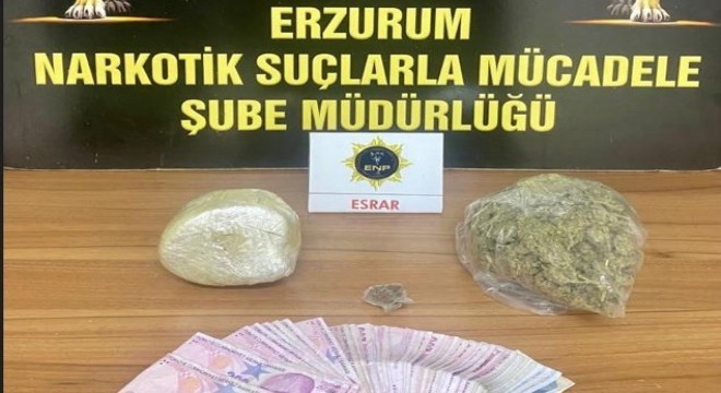 Erzurum Emniyet Müdürlüğü Narkotik Suçlarla Mücadele Şube Müdürlüğünce uyuşturucu madde ticareti ve sevkiyatına yönelik yapılan çalışmalarda, 3 şüpheliyle birlikte 856 gram esrar ele geçirildi.