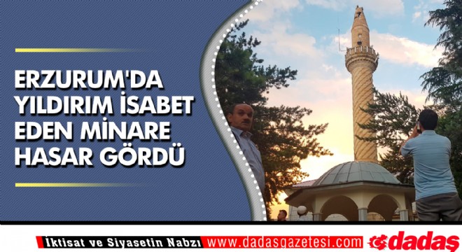 Erzurum da yıldırım isabet eden minare hasar gördü