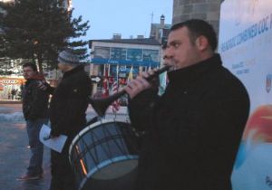 Erzurum'da hüküm süren Sibirya soğukları folklor ekibi için çalan zurnacının zurnasını çatlattı.
