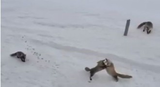 Tilkilerin 'ekmek kavgası' kameraya yansıdı