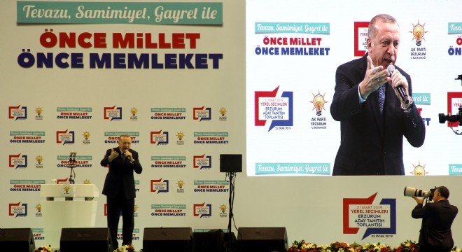 Cumhurbaşkanı ve AK Parti Genel Başkanı Recep Tayyip Erdoğan, Erzurum’da belediye başkanları aday tanıtım toplantısına katıldı. Erzurum Buz Hokeyi Salonu’nda düzenlenen tanıtım toplantısında konuşan Cumhurbaşkanı Erdoğan, Erzurum’un her dönem Türkiye’nin teminatı ve güvencesi olduğunu belirterek, "İstikbalimize giden yolu Erzurum olmuştur. Erzurum böylesine güçlü olarak ayakta durdukça kimse Türkiye’nin önünü kesemez. Bir asır önce Manda ve himaye kabul edilemez diyerek yedi düvele meydana okuyan Erzurum 15 Temmuz’da da darbecilere dünyayı dar etmişti" dedi.