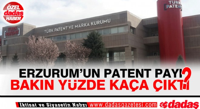 Erzurum ocak-temmuz ayları arasında ürettiği 18 patentle ülke sıralamasında 20’inci sırayı aldı. Türkiye’de patent üretiminin yüksek olduğu 20 il ve üretilen patent sayısı şöyle; İstanbul 1398, Ankara 504, Bursa 186, İzmir 164, Manisa 124, Kocaeli 123, Konya 101, Gaziantep 77, Sakarya 77, Antalya 59, Adana 46, Eskişehir 44, Tekirdağ 41, Kayseri 39, Mersin 31, Denizli 24, Samsun 24, Balıkesir 19, Kahramanmaraş 19 ve Erzurum 18.