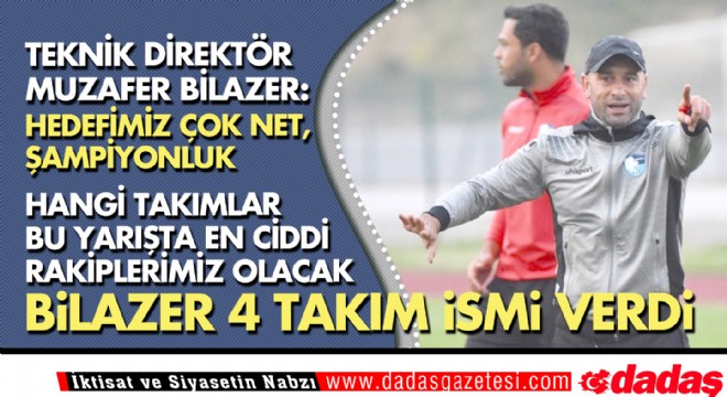 TFF 1. Lig ekiplerinden Büyükşehir Belediye Erzurumspor'un teknik direktörü Muzaffer Bilazer, bu sezonun kendileri için çok önemli olduğunu belirterek, "Hedefimiz çok net, şampiyonluk. Şampiyonluğun en büyük adayı da biziz." dedi.