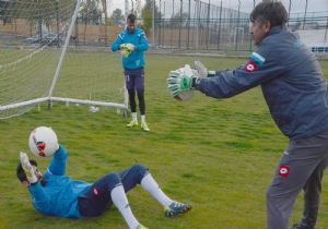 Antrenman öncesi mavi beyazlı futbolcular, yaklaşık yarım saat salonda kondisyon çalıştı. Sahadaki koşu, top kapma ve pas çalışmasının ardından futbolcular, yarı sahada çift kale maçla idmanı tamamladı.