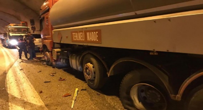 Artvin’de Deriner Tüneli'nde meydana gelen trafik kazasında akaryakıt yüklü tankere otomobil çarptı. Kazada otomobilde bulunan 3 kişi yaralandı.