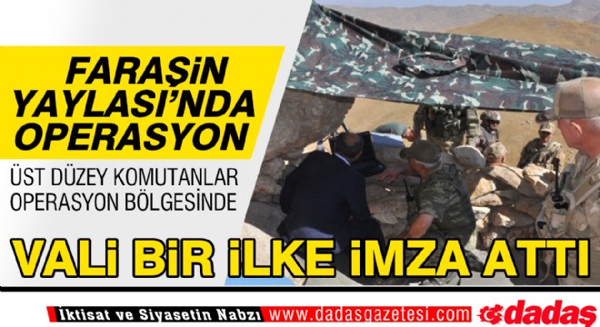 Şırnak, Van ve Hakkari üçgeninde bulunan ve yıllarca teröristler tarafından üs olarak kullanılan Faraşin Yaylasına ilk defa bir vali çıkıyor. Geçen yıl başlatılan ve başarılı bir şekilde tamamlanan operasyonlar sayesinde bölgedeki teröristler temizlenmişti. Bu yıl da bölgeye terörist sızdığı ishitbaratı üzerine yeniden operasyon başlatıldı. Geniş kapsamlı olarak sürdürülen operasyonu yerinde takip etmek üzere yaylaya çıkan Şırnak Valisi Mehmet Aktaş bir ilki gerçekleştirdi. Faraşin Yaylasına son 35-40 yıldır çıkan ilk vali olarak ismini yazdıran Mehmet Aktaş, bölgenin tamamen terörist unsurlardan temizlenerek halka açılacağını söyledi. Vatandaşların huzur ve rahatı için tüm imkanların seferber olduğunu belirten Vali Aktaş, operasyonun devam ettiği Faraşin Yaylasına çıkarak bizzat askerlere moral verdi.