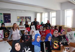 Bu arada görücüye çıkmayı bekleyen Flografi çalışmalarında bazı öğrencilerin tuttukları futbol takımlarının armaları yaptıkları göze çarpıyor.