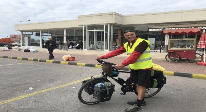 Fransa'dan bisikletle dünya turuna çıkan Fransız Fizik Tedavi Uzmanı Schaeffer Erıc (54), 7 ay sürecek turları kapsamında Alaplı ilçesine geldi.