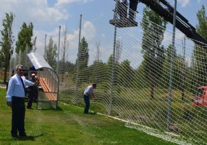 BB Erzurumspor’un da zaman zaman antrenmanlarını yaptığı yeni çim sahaların etrafına koruyucu tor çekilerek, sahalara yedek kulübeleri yerleştirildi.