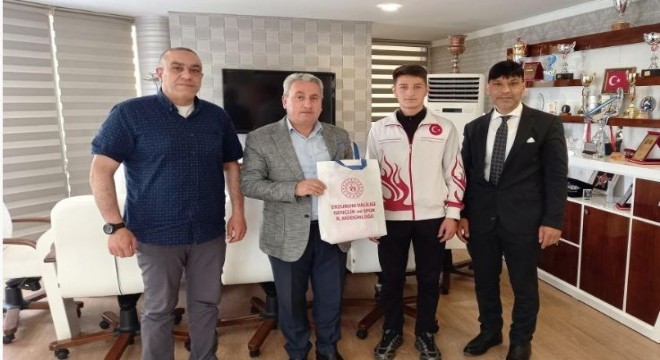 Erzurum Gençlik ve Spor İl Müdürü Fuat Taşkesenligil’i ziyaret etti. Genç boksör başarısını Taşkesenligil, milli boksörü Türkiye Şampiyonluğu için tebrik ederek, Avrupa Şampiyonası öncesinde kendisine başarılar diledi. Taşkesenligil, şampiyon boksöre başarı dileğinde bulundu.