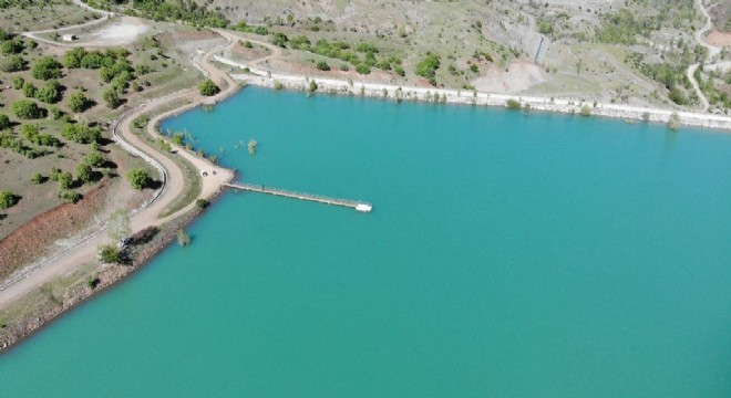 Doluluk oranında yüzde 96’lık rakamla yılın rekorunu kıran Erzincan’daki Göyne Barajı’nın su seviyesi havadan görüntülendi.