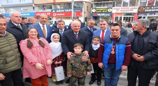 Erzurum’dan karayolu ile geldiği Bayburt’ta Orman İşletme Müdürlüğü kavşağı okullar bölgesinde karşılanan Bakan Güler, beraberindeki araçlarla Bayburt Valiliği önüne geldi. Bakan Güler’e '21 Mart Dünya Down Sendromu Günü' dolayısıyla özel gereksinimli çocuklar tarafından çiçek takdim edildi.