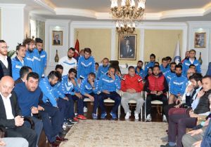 Şampiyon Erzurumspor takımı yönetici, teknik heyet ve futbolcuları ile birlikte takıma her zaman her fırsatta destek veren Vali Altıparmak’ı ziyaret ederek şampiyonluk sevincini paylaştılar.