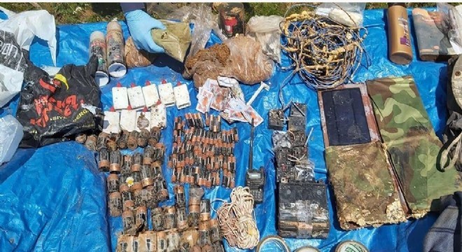 Açıklamanın devamında, “Ele Geçirilen Malzemeler, 1 Adet Yaesu Marka Telsiz, 9 Adet EYP Ateşleme Düzeneği Alıcısı, 30 Metre 3 X 2,5 Kablo, 20 Metre 2 X 0 75 Kablo, 50 Adet Kalem Pil, 50 Adet Büyük Pil, 1 Adet Güneş Paneli, 1 Adet Akü, 9 Adet Silah Bakım Yağı, 1 Adet Sırt Çantası, 2 Adet Uyku Tulumu, 2 Adet Kitap, 1 Adet Not Defteri, 2 Adet Çuval İçerisinde 102 Kg Toz Esrar Maddesi, Çok Sayıda İlk Yardım, Giyim ve Yaşam Malzemesi ele geçirilmiştir” ifadeleri kullanıldı.