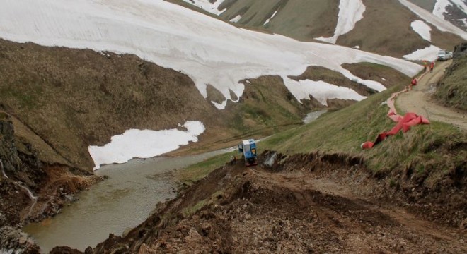 Bayburt-Trabzon il sınırında yürütülen yol açma çalışmalarını takip ederken ...