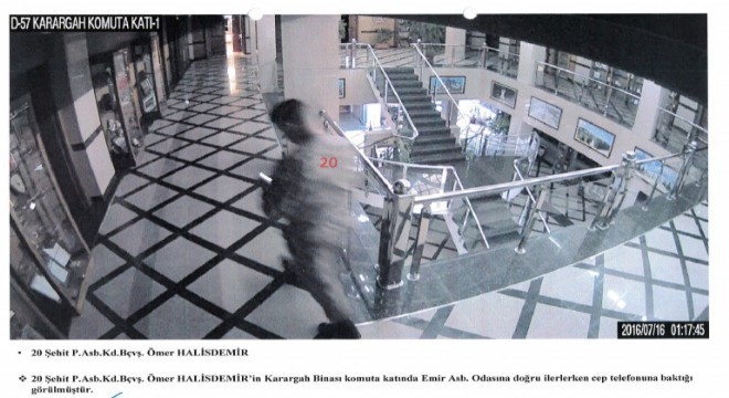 Ankara Gölbaşı'ndaki Özel Kuvvetler Komutanlığını ele geçirmek isteyen darbeci general Semih Terzi'yi vurarak darbe girişiminin seyrini değiştiren Astsubay Ömer Halisdemir'in şehit edilmesine ilişkin 18 sanık hakkında açılan davanın 12. celsesi görüldü. Ankara 14. Ağır Ceza Mahkemesi'nde görülen davanın bilirkişi raporuna o gece yaşanan görüntüler de girdi. Kamera kayıtlarına Halisdemir'in Aksakallı'dan "darbeci Terzi'yi vur" emrini aldığı telefon görüşmesi yansıdı. Telefonla konuşmasından bir müddet sonra dışarıya çıkan Halisdemir, darbeci Terzi'yi gözünü kırpmadan vurdu. Bu anlardan bir müddet sonra darbe sanığı askerlerin Terzi'yi içeriye taşıdıkları, bir müddet sonra da dışarıya çıkardıkları görüldü.