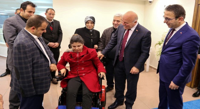 Erzurumlu hayırsever işadamı Mehmet Aca, 27 yaşındaki doğuştan engelli Firdevs Eren’e akülü araba hediye etti.