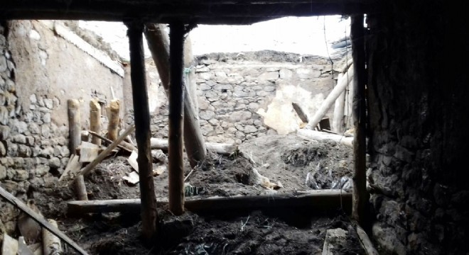 Horasan Yazılıtaş'ta ahır çöktü hayvanlar telef oldu