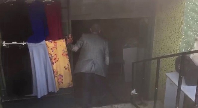 Horasan ilçesinde bir giyim mağazasında yangın çıktı.