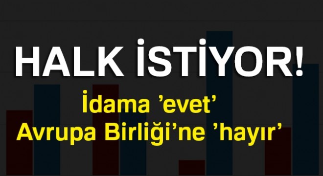 BETIMAR araştırma şirketi tarafından yapılan ankette, halkın yüzde 59,86’sı idam cezasının geri gelmesini isterken, yüzde 49.54’ü de "Avrupa Birliği ile müzakereler devam etmemeli" dedi.