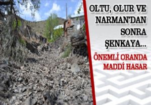 Şiddetli yağışın sele dönüşmesiyle Şenkaya ilçesine bağlı Hoşköy köyünde sel sularının taşıdığı moloz ve taşlar, sokakları ve yolu kullanılmaz hale getirdi. Köyün içme suyu şebekesi zarar görürken, Şenkaya'ya bağlı Akşar köyünde bulunan ilçe merkezine ve köylere elektrik dağıtımının yapıldığı trafo binasını su bastı. Karayoluna selden dolayı dökülen molozları, karayolları ekipleri temizleme çalışmaları başlattı.