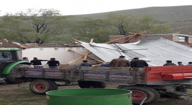 Erzurum’un Horasan ilçesinde aniden bastıran yağmur ve fırtınada birçok ev yıkılırken, yıkılan evlerdeki eşyaları köylüler kendi imkanları ile çıkarmaya çalıştı.