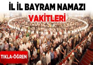 Bayramı namazı Erzurum'da 07.05, Ankara'da 07.39, İstanbul'da 07.56, İzmir'de 08.00, Iğdır'da 06.54'de kılınacak.
