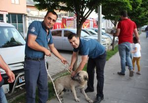 Oltu çayında mahsur kalan sokak köpeği itfaiye ekiplerince kurtarıldı.