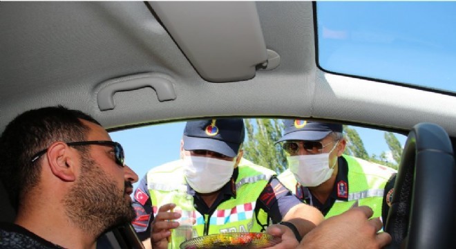 Oltu İlçe Jandarma Komutanlığı trafik timleri ve İl Jandarma trafik şube ekiplerince Oltu Tortum kara yolu Orcuk kavşağında Kurban Bayramı süresince trafik denetlemelerini Dron ile sürdüren ekipler iyi bayramlar dileklerinden bulunarak sürücülere şeker kolonya ikram ettiler.