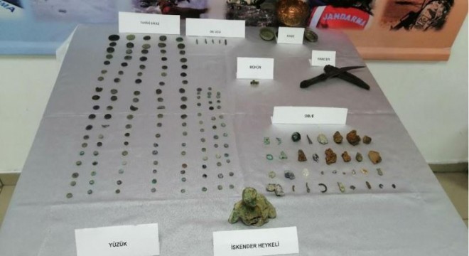 İl Jandarma Komutanlığı’nca kültür ve tabiat varlıklarının korunması ile kaçakçılığın önlenmesine yönelik yürütülen çalışmalarda, şüpheli bir kişinin elinde bulunan tarihi eserleri satacağı bilgisine ulaşıldı. Kaçakçılık ve Organize Suçlarla Mücadele Şube Müdürlüğü ekiplerince, şüpheli şahsın içerisinde bulunduğu otobüs Güzçimeni köyü mevkiinde durduruldu.