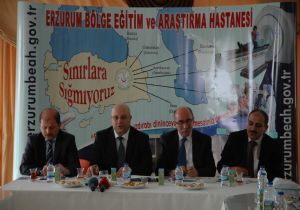 Erzurum Kamu Hastaneler Birliği’nin 2014 yılındaki sağlık tesislerinde verilen hizmetlerin bilgilendirme toplantısı düzenlendi. Kamu Hastaneler Birliği toplantı salonunda düzenlenen toplantıya Erzurum Kamu Hastaneler Birliği Genel Sekreteri Prof. Dr. Fazlı Erdoğan, birlik temsilcileri ve hastane başhekimleri katıldı.