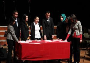 Açılış konuşmalarının ardından günün anlam ve önemini belirten şiirler okunarak öğretmenlik yemini edildi.