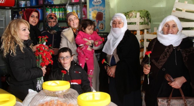 Kent Konseyi Kadın Meclisi Başkanı Nefise Kıyıcı, Başkan Yardımcısı Hülya Gökdemir, Yönetim Kurulu Üyeleri, ERMAÇEVDER Başkanı Murat Girgin ile birlikte Karayazı’da "Kadına Yönelik Şiddete Karşı Uluslararası Mücadele Günü" dolayısıyla ilçe sakinlerine karanfil dağıttı. Hanımlara karanfil takdim eden Kent Konseyi Üyeleri daha sonra 300’ün üzerinde esnafı da ziyaret etti. Kent Konseyi Kadın Meclisi Başkanı Nefise Kıyıcı, ziyaretle ilgili yaptığı değerlendirmede, “Erzurum Büyükşehir Belediye Başkanımız Mehmet Sekmen Beyefendinin talimatıyla Kent Konseyi Kadın Meclisi olarak ilçemizi ziyaret edip Karayazılı hemşerilerimizle buluştuk. ‘Kaybetmek değil gönül kazanmak’ temalı sosyal sorumluluk projemizi hanımlara anlatarak, vatandaşlarımızla hasbi hal etme imkânına kavuştuk. Karayazılı vatandaşlarımızın sevgi seli bizleri ziyadesiyle mutlu etti. Karayazılı hemşerilerimiz Başkanımızın çalışmalarıyla ilçenin daha modern bir görünüme kavuştuğunu dile getirerek, yerleşim yerindeki güzelliklerden ötürü duydukları memnuniyeti, Başkanımıza olan sevgi ve şükranlarını bizlere aktardı. Ziyarette Karayazılı hemşerilerimizin gönüllerini alarak vatandaşlarımızla bir araya geldik” dedi.