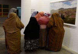 Hayalarında ilk kez bir sergi gören yöresel kıyafetli kadınlar, eserleri adeta hayranlıkla izledi. Dakikalarca eserleri pür dikkat inceleyen kadınlar, “Çok güzel olmuşlar. Çok beğendik. İlk kez bu tür resim, tablo, eserleri gördük” dediler.