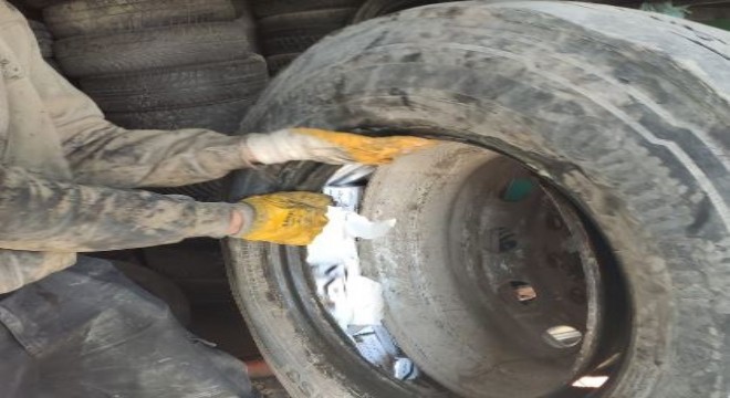 Kamyon lastiğinden 5 bin paket sigara çıktı