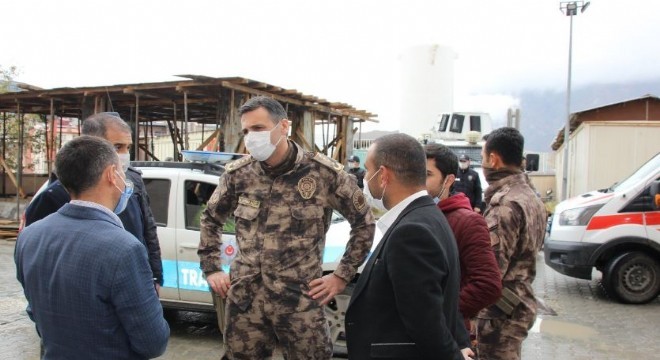 Hakkari Emniyet Müdürü Atanur Aydın, Derecik ilçesinde terör örgütü PKK mensuplarının saldırısı sonrası şehit düşen 3 işçinin Hakkari Devlet Hastanesi önünde bekleyen ailelerine destek ziyaretinde bulundu. Hastane morgu önünde bekleyen şehit yakınlarına başsağlığı dileyen İl Emniyet Müdürü Atanur Aydın, “Sivil, işçi ve köylü demeden masum insanları katleden kansızlara gereken cevabı vereceğiz” dedi.