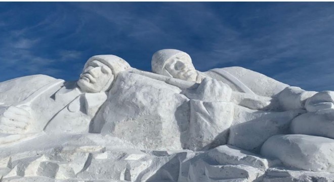 Sarıkamış Harekatı’nın 107. yılı anma etkinlikleri kapsamında sergilenecek kardan heykellerin yapımı tamamlandı.