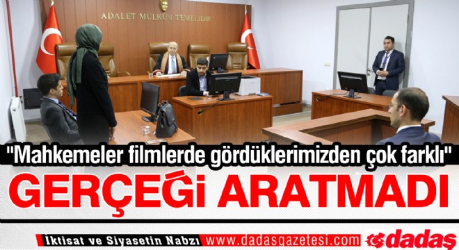 Erzurum'da, Adalet Bakanlığının katkılarıyla bir fuar merkezinde kurulan duruşma salonunda, adalet sistemi ve duruşmalarda yaşananların uygulamalı olarak anlatıldığı temsili duruşma gerçeğini aratmadı.