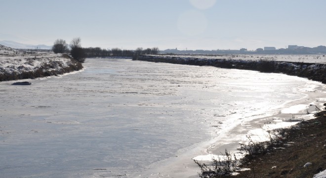Hava sıcaklığının eksi 19’u gördüğü Kars’ta, Kars Çayı dondu