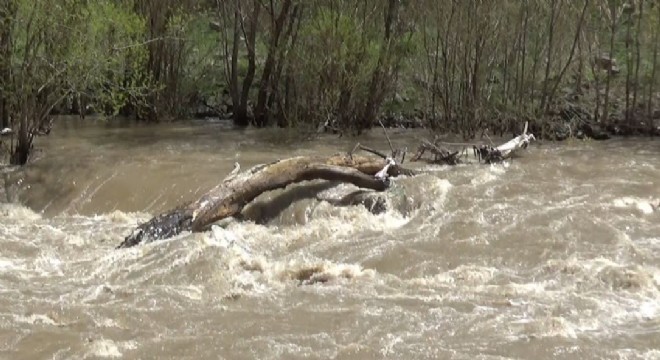 Karın lodosla birlikte hızlı erimesi Kars Çayı’nı taşırdı. Kars Çayı’nın taşmasıyla birlikte çok sayıda ağaç sular altında kaldı. Sularla birlikte gelen ağaçlar ise dikkat çekti.