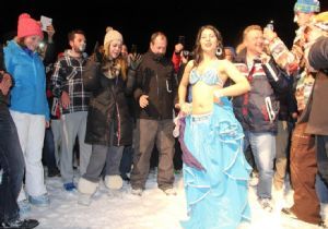 Kayak pistinde dansözlü yılbaşı kutlaması