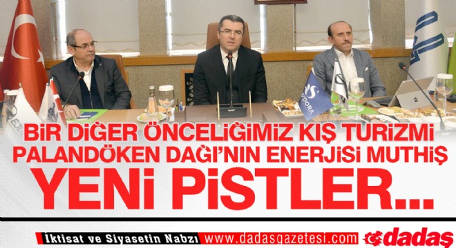 “Şehir ekonomisine nasıl katkıda bulunabiliriz diye bir çaba içerisindeyiz. Fark ettiğim kadarıyla bir hayvancılık kentiyiz. Hedefimiz 2019 yılı itibariyle hayvancılıkta bir numara olmak. Bunun için görevli ve sorumlu arkadaşlarımızla birlikte bir strateji belirledik. Çünkü insanlarımıza iş ve aş vermek istiyoruz. Bir diğer önceliğimiz ise kış turizmidir. Bizzat kendim önce Büyükşehir’in işlettiği tesisleri kullandım sonra güney pistinde üç defa kayak yaptım. Bütün otellerin pistlerini denedim. Otellerimizin pistleri gayet güzel keyif aldım, fakat asıl pist ejder. Odaklanmamız gereken dağın Palandöken olduğu kanaatindeyim. Gidilen mekânın enerjisi çok önemli, Palandöken Dağı’nın enerjisi müthiş. Bütün enerjimizi Palandöken Dağına vermeliyiz, yeni pistleri de burada oluşturmalıyız.’’
