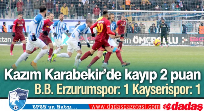 Erzurumspor evinde oynadığı karşılaşmada Kayserispor ile 1-1 berabere kalarak ligde kalma ümidini sezonun ikinci yarısına taşıdı. Kasımpaşa maçından sonra evinde 2’inci, toplamda ise 7’inci beraberliği alan mavi beyazlı ekip puanını 16’ya yükseltti. Dadaş taraftarların coşkusu ve maç boyunca hiç kesilmeyen tezahüratlarına rağmen mavi beyazlı ekip beraberlikle yetindi.