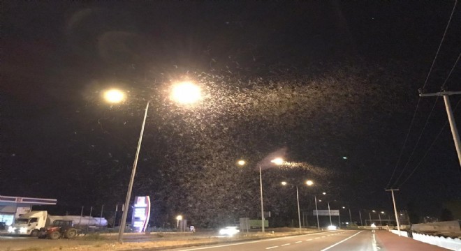 Erzurum’da 'kelebeklerin ölüm dansı' geceyi beyaza bürüdü. Sokak aydınlatma direklerinin ışıklarının etrafında dakikalarca uçup, bir süre sonra ölen kelebekler, yerde beyaz bir örtü oluşturdu.