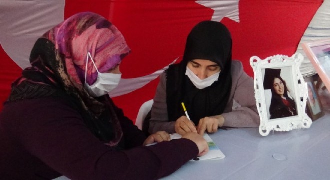 Diyarbakır’da terör örgütü PKK tarafından dağa kaçırılan kızı Şeyma için HDP il binası önünde 286 gündür oturma eylemi yapan Türkan Mutlu, kızına duyduğu özlemi kaleme almak için nöbet tuttuğu çadırda kendi imkanları ile okuma yazma öğrenmeye çalışıyor.