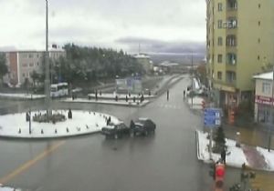 Erzurum'da değişik kavşaklarda buzlu zeminde kayan otomobiller kaza yaptı. Trafik kazaları MOBESE kameralarına takıldı.