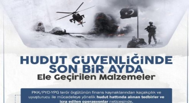 PKK/PYD-YPG terör örgütünün finans kaynaklarından kaçakçılık ve uyuşturucu ile mücadeleye yönelik hudut hattında alınan tedbirler ve icra edilen operasyonlar neticesinde çok sayıda; silah, mühimmat ve yasa dışı malzeme ele geçirildiği MSB tarafından açıklandı.