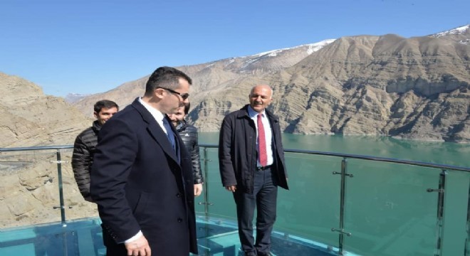Erzurum'un Uzundere ilçesi yakınlarındaki Tortum Şelalesi'ni besleyen Tortum Gölü'nün kenarına KUDAKA tarafından yaptırılan seyir terasını gezen Vali Okay Memiş, terasın yerli ve yabancı turistlerin uğrak yeri haline geleceğini söyledi.