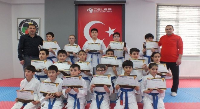 Kuşak terfi sınavlarının ardından başarılı olan ve bir üst kemere terfi eden sporculara katılım sertifikası verildi.
