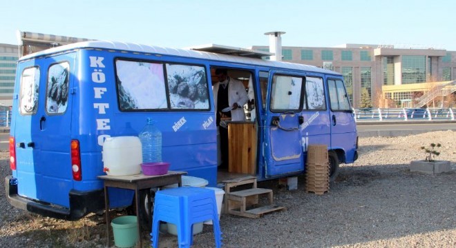 Erzurum’da bir vatandaş, kamyonunu satarak karavan minibüs aldı. Köfteciye çevirdiği minibüsüne buzdolabından çay ocağına kadar bir lokantada olması gerekenleri koyan vatandaş, siparişlere yetişemiyor.